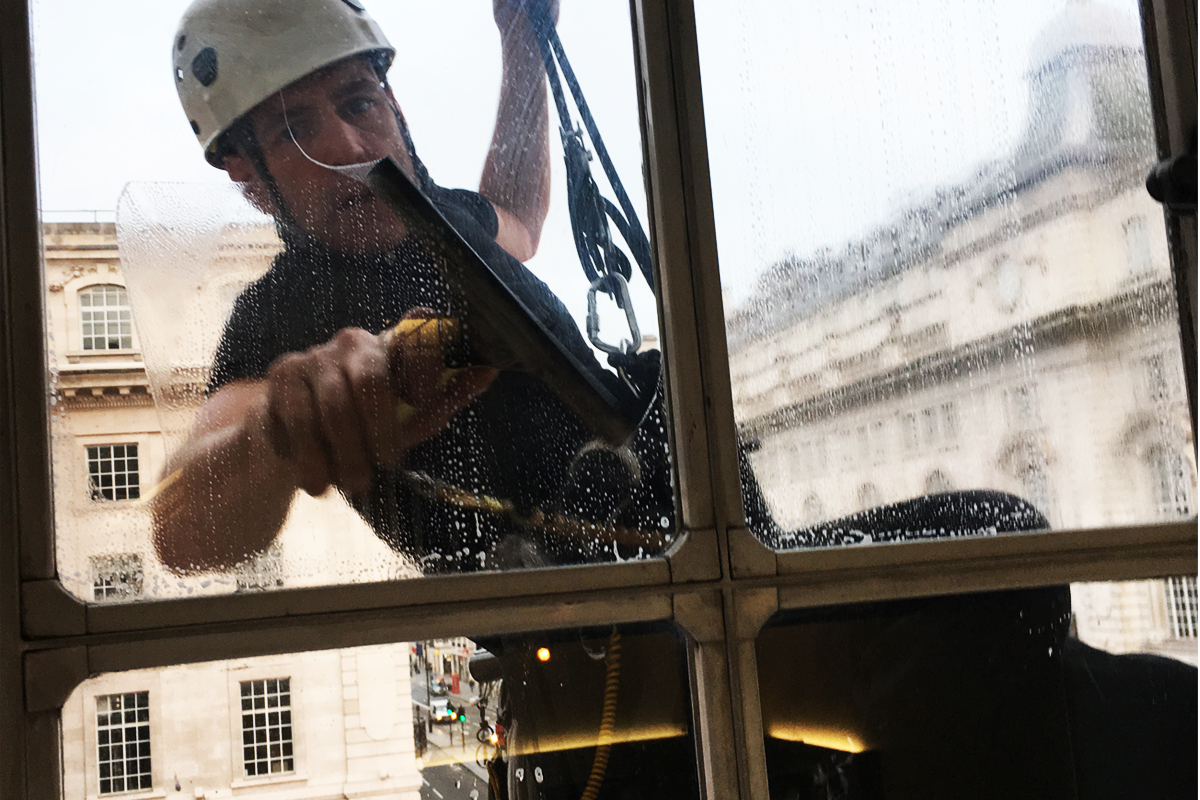 Window cleaning by rope access including reach & wash using purified water stands as the fastest and most efficient method, with no height limitations, providing unbeatable price and exceptional results compared to traditional hand-cleaning methods.